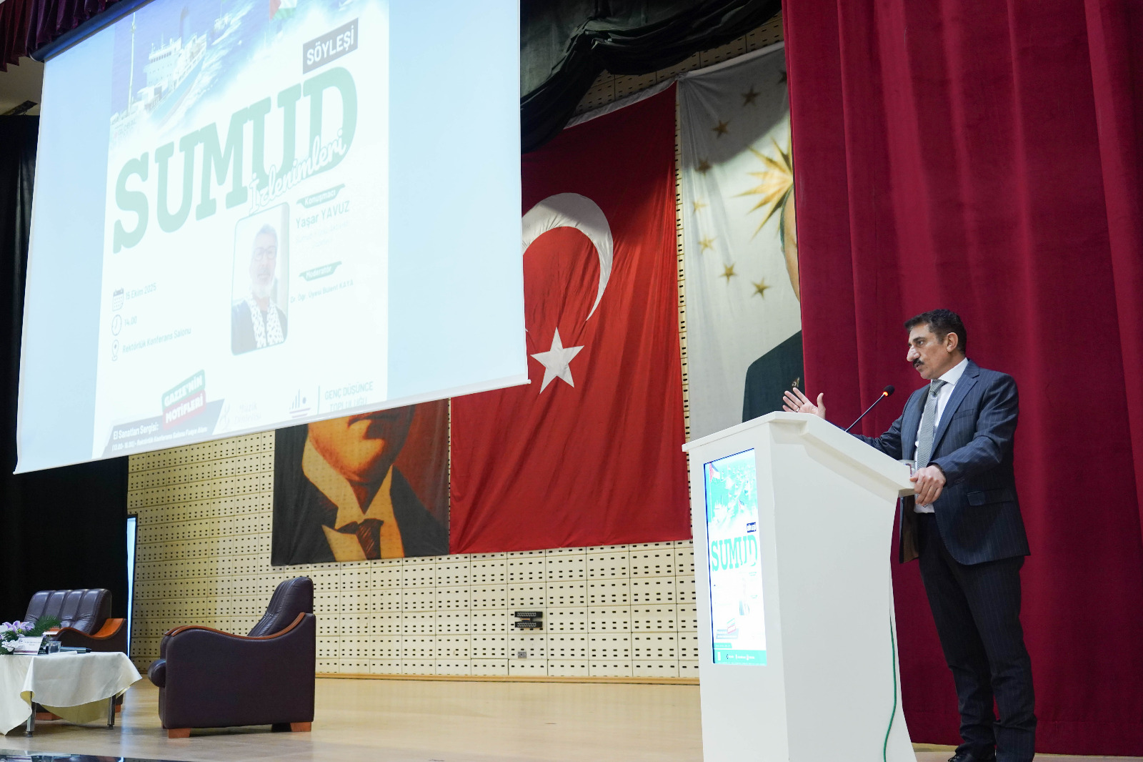 Üniversitemiz Genç Düşünce Topluluğu tarafından düzenlenen “Sumud İzlenimleri” başlıklı söyleşi, üniversitemiz Rektörlük Konferans Salonu’nda yoğun katılımla gerçekleştirildi. Konuşmacı olarak Sumud Filosu Aktivisti ve Gazeteci Yaşar Yavuz’un yer aldığı etkinlikte, yönlendiriciliği Dr. Öğr. Üyesi Bülent Kaya üstlendi. Programda, Filistin halkının yaşadığı insani kriz, Sumud Filosu çerçevesinde değerlendirildi.