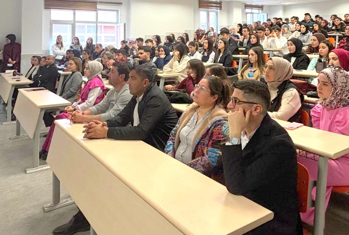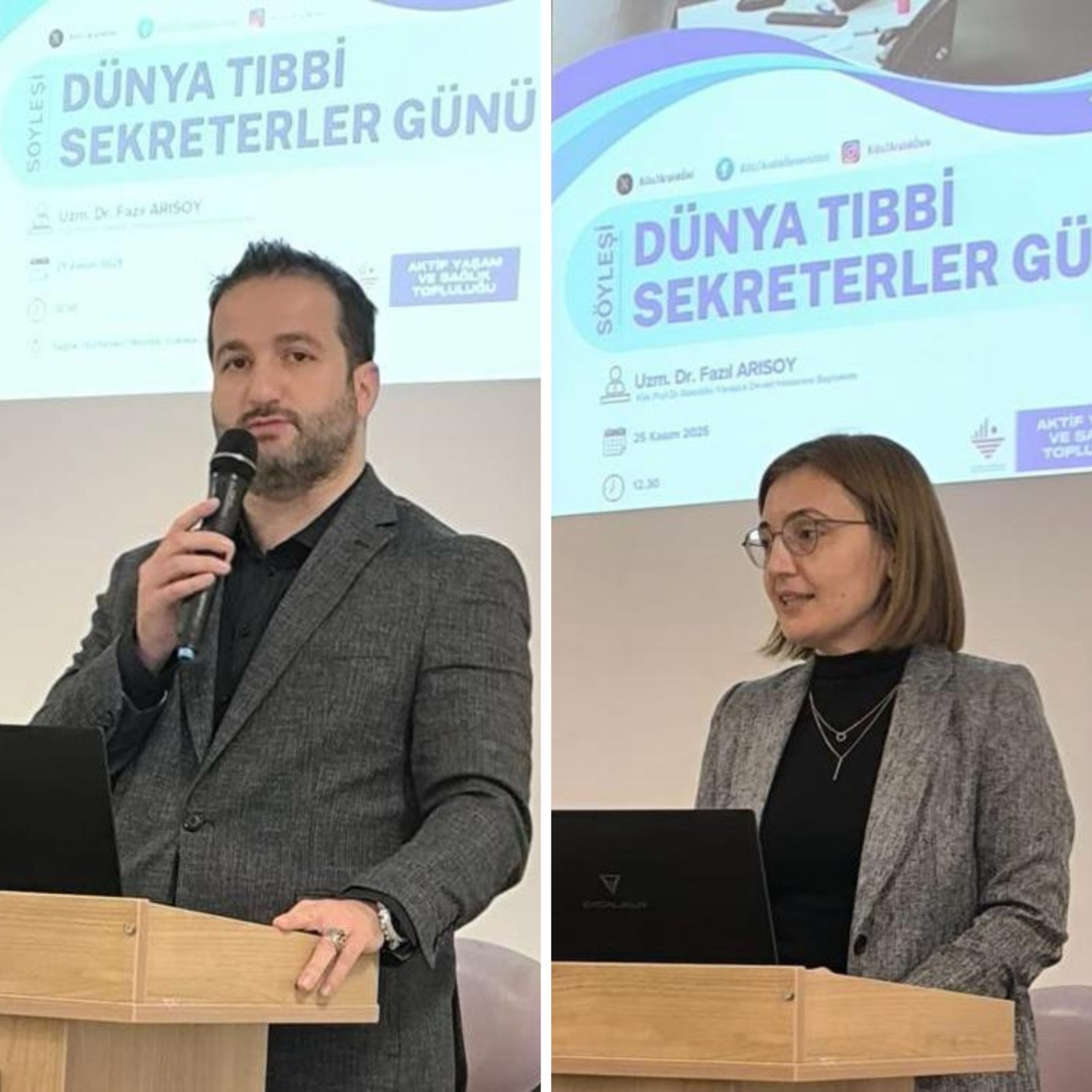 Etkinliğin davetli konuşmacısı, Prof. Dr. Alaeddin Yavaşça Kilis Devlet Hastanesi Başhekimi Uzm. Dr. Fazıl Arısoy söyleşide, tıbbi sekreterlik mesleğinin sağlık kurumlarının işleyişi, hasta memnuniyeti, veri güvenliği ve organizasyonel verimlilik açısından taşıdığı stratejik değeri kapsamlı bir biçimde ele aldı. Mesleğe adım atacak öğrencilere güçlü iletişim becerileri geliştirme, sağlık bilişim sistemlerine uyum sağlama, profesyonel etik ilkelere bağlı kalma ve sahada karşılaşılabilecek durumlara yönelik pratik öneriler sundu.