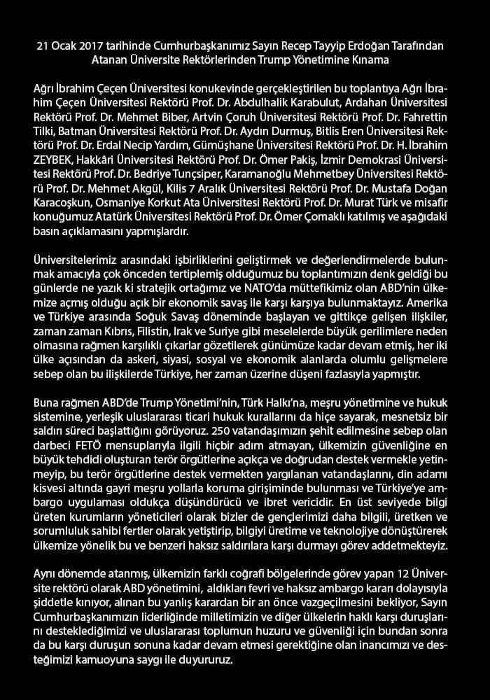 12 Üniversitenin Rektöründen Trump Yönetimine Kınama