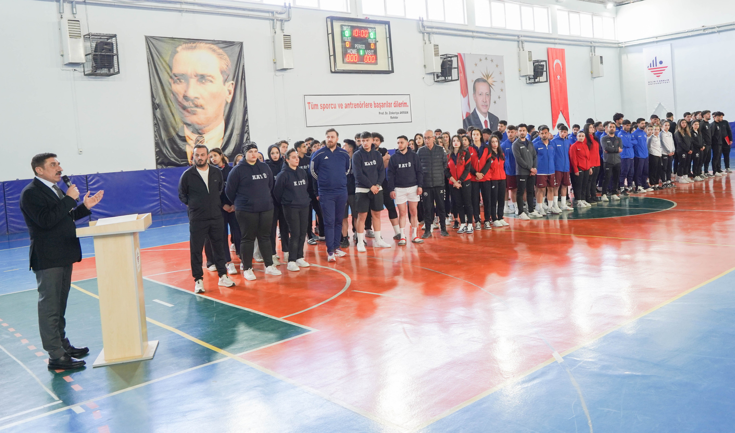 Üniversitemiz Merkez Kampüs Spor Salonu’nda gerçekleştirilen açılış programına, Rektörümüz Prof. Dr. Zekeriya Akman, Gençlik ve Spor İl Müdürü Mustafa Ertunç, üniversite birim yöneticilerimiz, akademik ve idari personelimiz ile öğrenciler katıldı. Türkiye'nin farklı şehirlerinden kadın ve erkek futsal takımlarının yer aldığı şampiyona kapsamında çok sayıda üniversiteden sporcular, antrenörler ve teknik ekipler Kilis’te bir araya geldi.