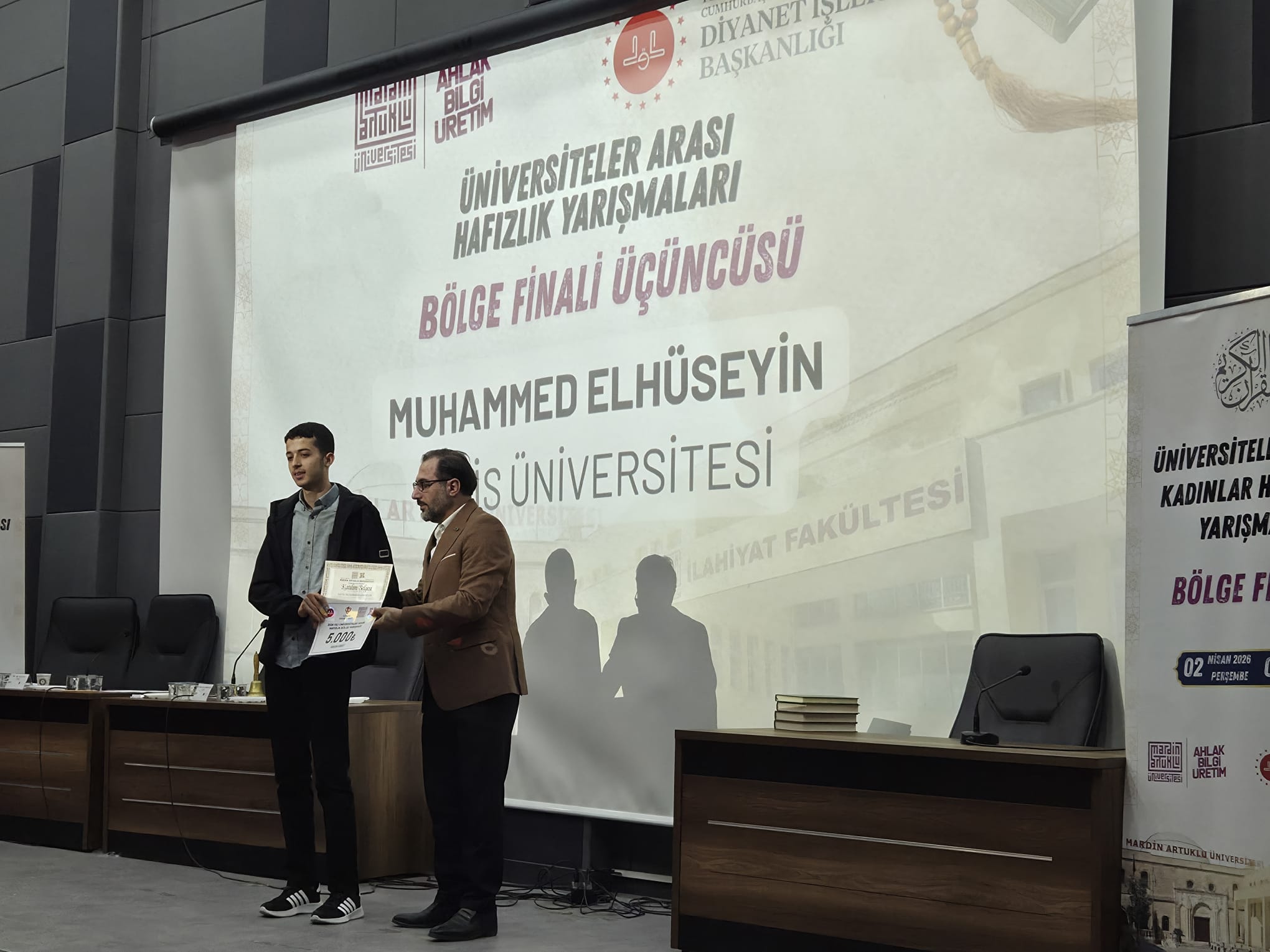 Mühendislik-Mimarlık Fakültesi Öğrencimiz Muhammed Elhüseyin ise Erkek Hafızlık Kategorisinde bölge üçüncüsü olarak üniversitemizi temsil etti.