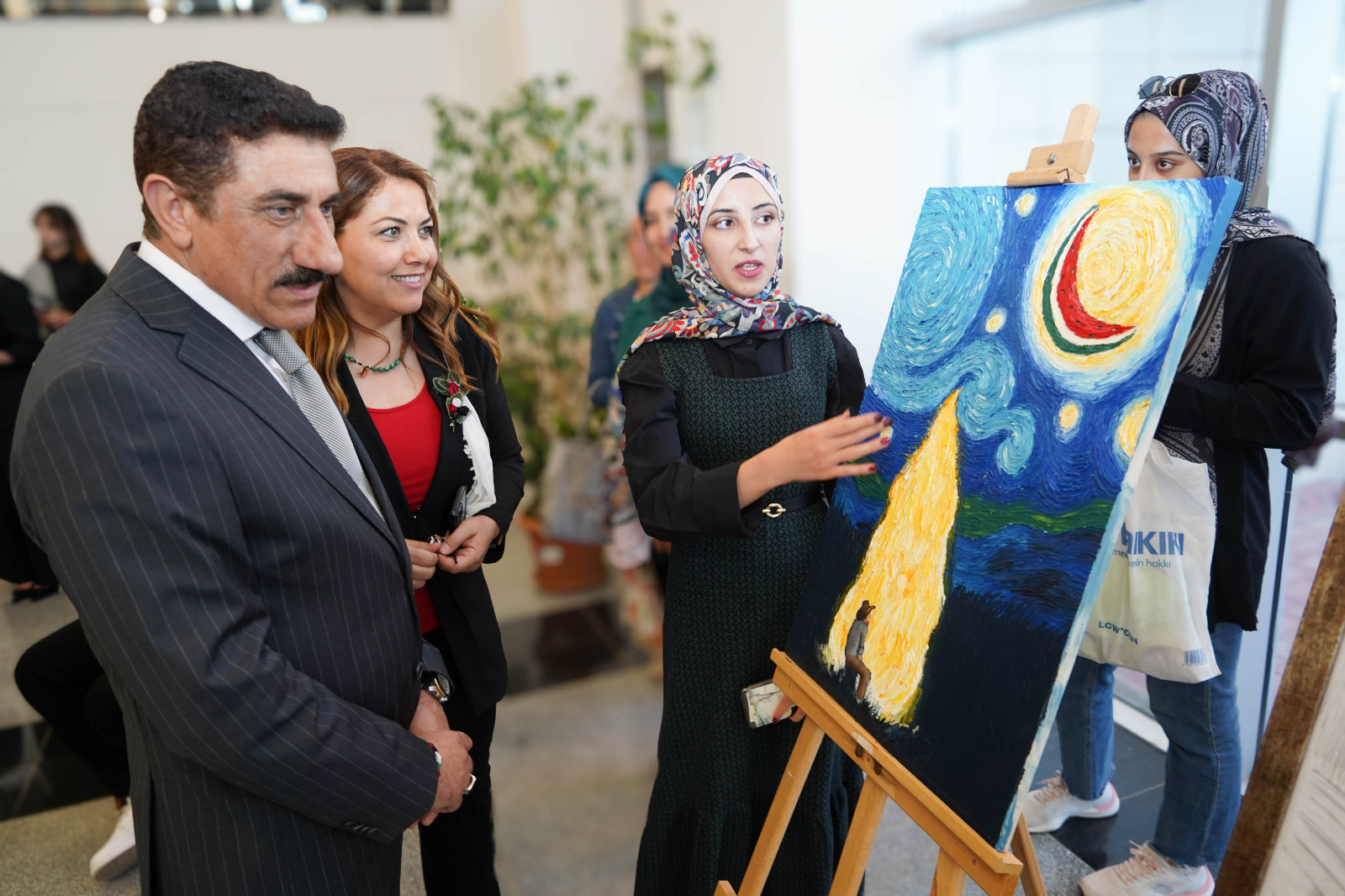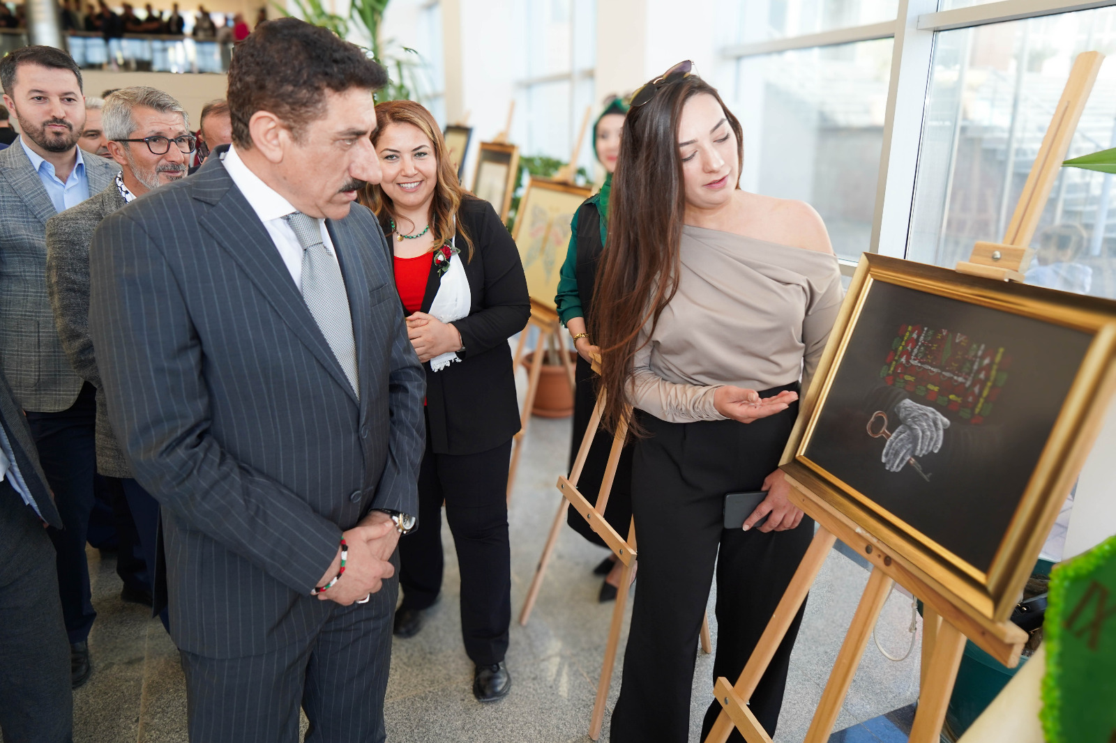 Serginin açılışını Rektörümüz Prof. Dr. Zekeriya Akman gerçekleştirdi. Açılışta yaptığı konuşmada, sanatın evrensel diliyle barış, umut ve direniş gibi değerlerin çok daha güçlü ifade edilebildiğini belirtti. Üniversite olarak bu tür etkinliklerle toplumsal meselelerde duyarlılığı artırmayı hedeflediklerini dile getirdi.
