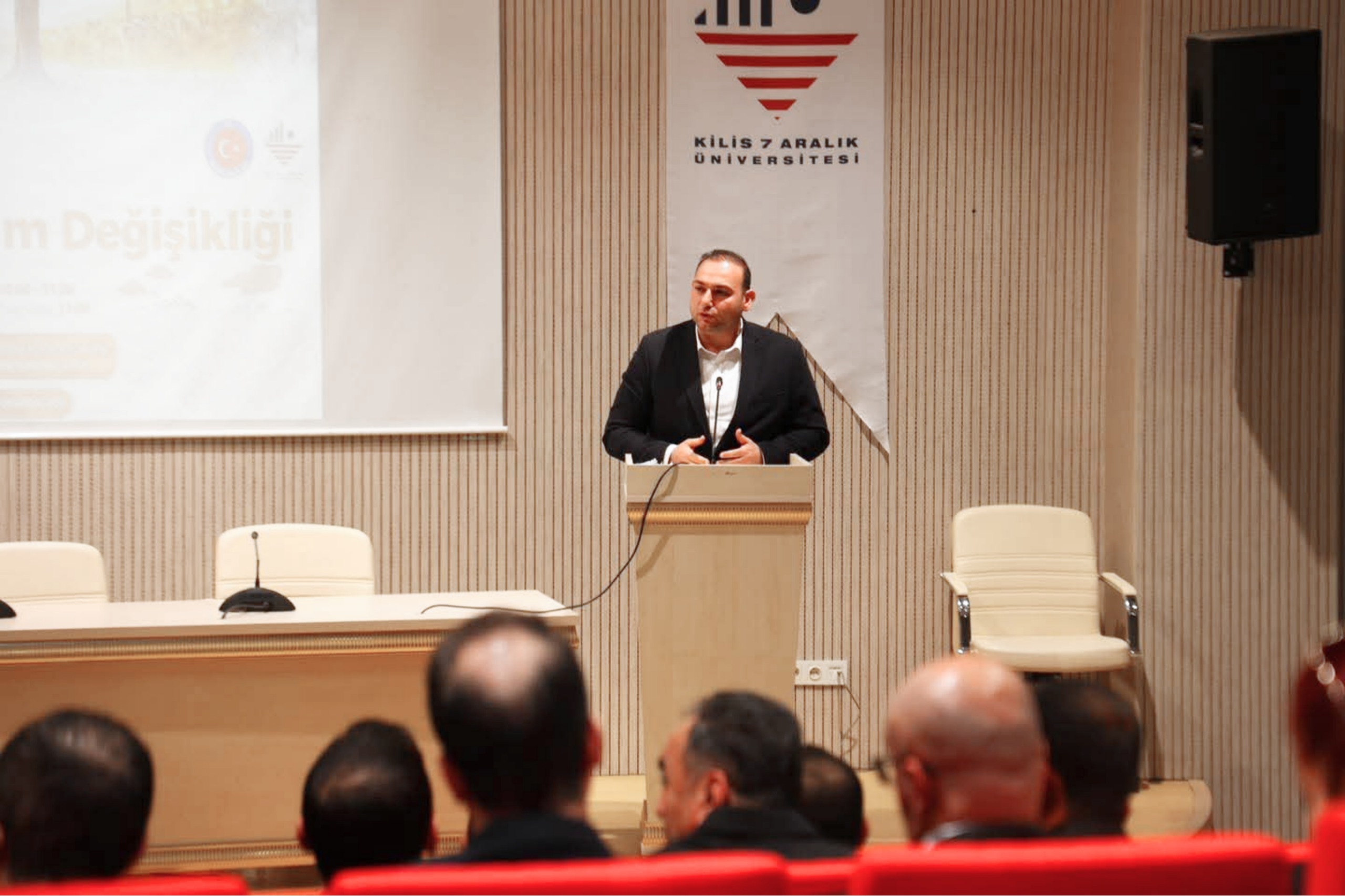 Kilis Belediye Başkanı Bilecen iklim değişikliğinin çok önemli bir konu olduğunu vurgulayarak Kilis’i geleceğe hazırlama noktasında kurumlarla ve özellikle üniversite ile iş birliğinin önemine değindi.
